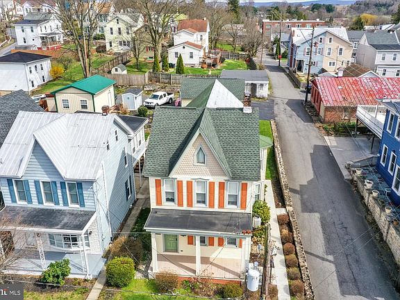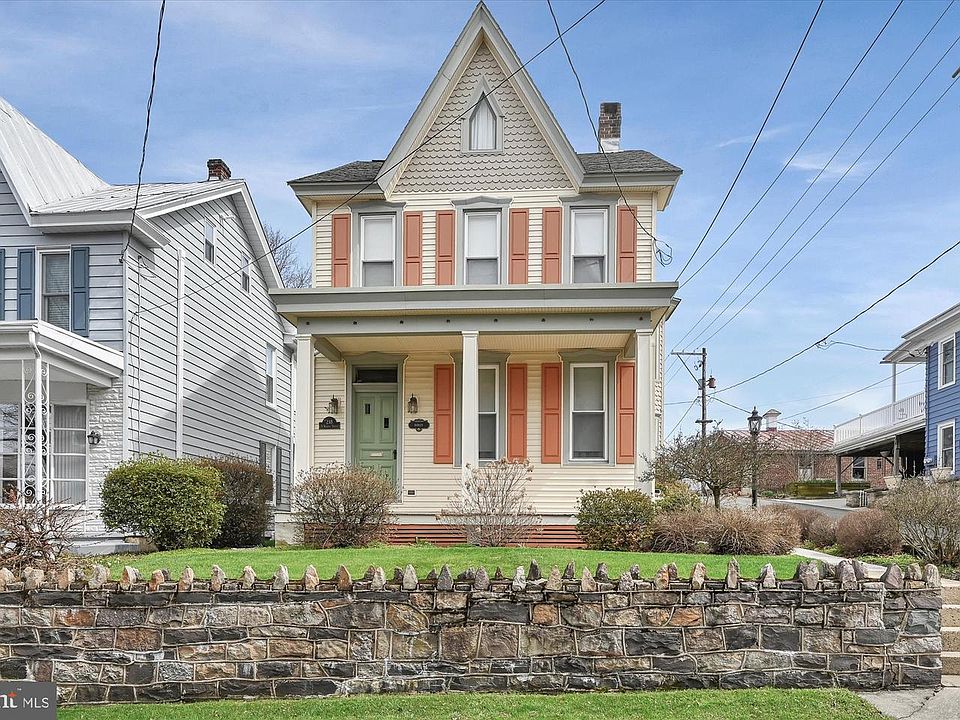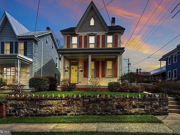 This 1897 Victorian is full of Orwigsburg charm. It retains its exterior window trim and fishscale highlights and its original interior woodwork including bedroom door transoms and open stairway. The first floor offers a modern working kitchen with an adjacent breakfast room, dining room with bay window and formal living room. On this level there is also a full modern bath and space for first floor laundry. The second floor has three large, separate entry bedrooms, one with a bay window, and another bath. This bath has the original deep clawfoot tub, tile floor and Baldwin brass accessories. A small room serves as a walk-in closet. There is hall access to a wonderful large attic with potential for additional living space. The laundry is currently in the basement but is located directly under first floor space which would allow for a stacked washer/dryer. The shingle roof was replaced in 2013. Arrangements have been made for the metal roof to be painted the week of May 9, 2022. The location is just two blocks from Orwigsburg's center square with its small town amenities. Fun historical fact: Across from the garage is Orwigsburg's original tiny jail.