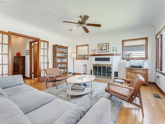 - Features: Ceiling Fan, Fireplace, French Doors, Hardwood Floors