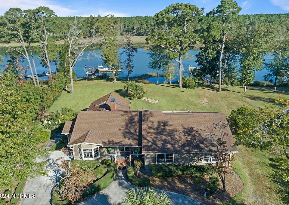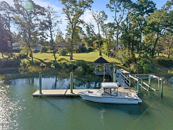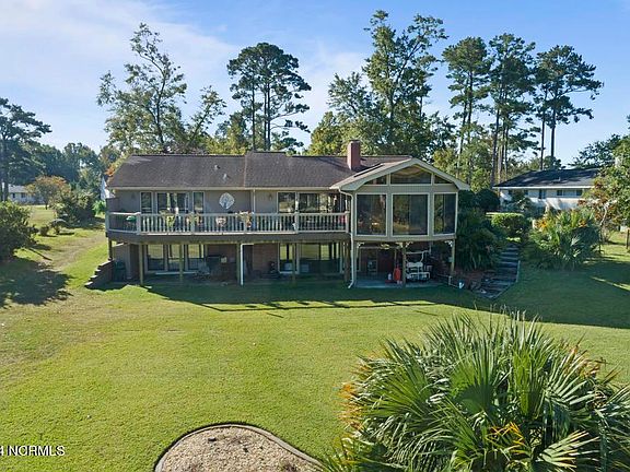* Best and Final by 1/22/24 @ 5:00p* Step into a serene waterfront world as you arrive at this hidden gem in the heart of Hampstead. The moment you roll into the circular drive, swaying palm trees, and a captivating water vista in the sought-after, established Olde Point community will captivate you, Expansive windows offer breathtaking views of the creek from the sunroom, large designer TREX deck, spacious living room with a gas fireplace, and master bedroom. The charming ambience is enhanced by updated flooring, lighting, and fresh earth-toned paint throughout. Stroll down to the newly refurbished, private deep water dock a few minutes from the Intracoastal Waterway, to boat, fish, paddle board, birdwatch, or relax in the gazebo. The heart of the home is a spacious kitchen adorned with Silestone quartz countertops, ample cabinets, and new lighting and hardware. The kitchen connects seamlessly to the dining room with a bay window that bathes the area in natural light. In the generous sunroom, bask in the warmth of the sun while enjoying spectacular sunsets on the tranquil water. Downstairs, a dedicated workroom awaits your projects. Invite guests for a game of pool, bbq on the back patio and end with a sunset boat ride. A separate walk-out entry adds extra privacy for guests or an en-suite living space with an extra-large bedroom and a third full bath. KEY FEATURES: Waterfront deep-water floating 47' dock on creek, 5 min. to Inland Waterway, under 15 minutes to Topsail Inlet. Sunroom & designer TREX deck (see uploaded measurements) w. fabulous water views Spacious living room for entertaining Sunny office 3 full baths Separate downstairs entrance for added privacy Workshop for DIY enthusiasts Per Seller, UPDATES INCLUDE: Mitsubishi Split in sunroom (21') central air/heat (19') Hot water heater (2023), garbage disposal (2022) Propane Fireplace Upgrade (2023) Clean termite inspection 10/23 H20 softener