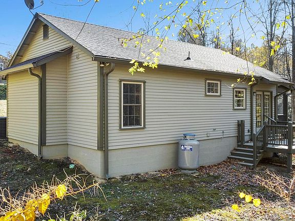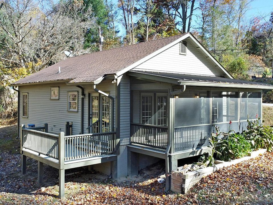 Eight year old Saluda cottage located just outside the city limits on quiet street in Henderson County, no city taxes. Walk to downtown. Gas "woodstove" in living area, small dining area and living are open to screened porch that overlooks the woods. Attached covered carport opens into LR. No restrictions or HOA. STR OK.