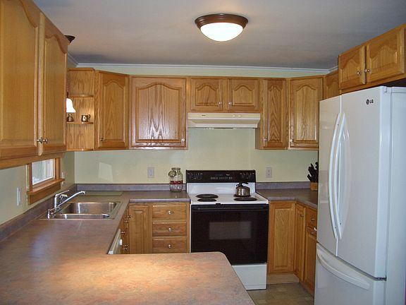 More space that meets the eye in this wonderful low maintenance vinyl sided Ranch house with BRAND new roof and vinyl replacement windows! The house features hardwood floors, large bright living room with wood burning fireplace, nicely appointed Oak kitchen with breakfast bar, dining room overlooking backyard, remodeled bedroom with new carpet and walk-in closet, much of the interior is newly painted and there are many new light fixtures. Bonus room with slate floor could be bedroom or great office/den. The lower level is partially finished, has seperate laundry and work shop area. Great curb appeal with attractive landscaping, mature trees, cement walkway, covered car port and paved driveway. GREAT backyard with big deck, new garden shed and fully fenced yard!