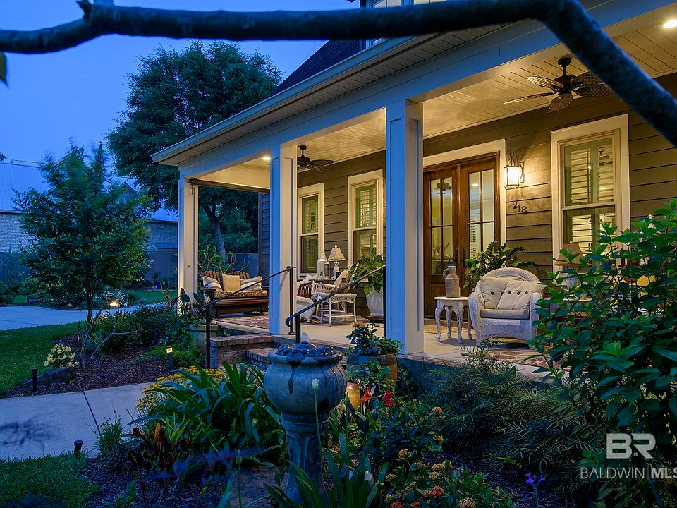 Welcome to Low Country style living at its best, located in the heart of Fairhope with modern amenities and impeccable craftsmanship. Enjoy coastal living just minutes from downtown and bay access on an oversized landscaped lot. The open-concept living space boasts ten-foot ceilings, a gas fireplace, and custom kitchen with granite countertops. The primary suite features a luxurious bathroom and flexible space for an office or gym. Two additional bedrooms upstairs offer comfort and privacy for guests. Outside, the covered patio is perfect for al fresco dining in the fully fenced backyard. The property includes a two-car garage with adjoining 500 sqft space for wood workshop, home gym or art studio. Bring your boat, trailer or golf cart and hide behind the double gate beside the garage. Plenty of parking for everyone. HOA free neighborhood. This beautiful home is definitely a rare find.