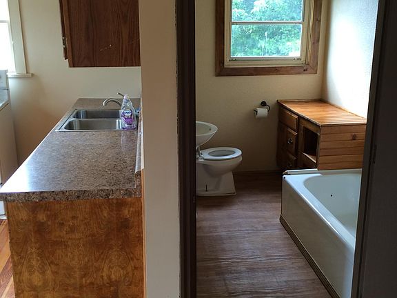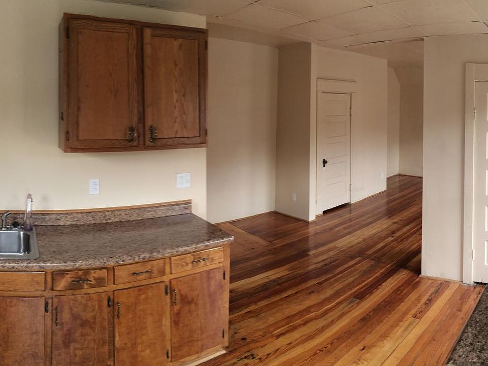 This spacious 850 square foot 2nd floor unit is recently refinished and now available! The property is well maintained in an excellent location with many nice features. Improvements have been tastefully done to restore and retain the original 1910 architecture and character of the brick building with covered porches on the front and back. The original hardwood floors have been refinished throughout with a light stain and satin finish. The large windows, shining satin finish floors and new neutral paint and gloss molding gives it a fresh, open and bright feel. The spacious kitchen has restored cabinets and new laminate countertops with a large windows on two sides. The bedroom is 14.5' X 16' with windows facing the East and South. The 16' X 17' living room is centrally located with the entry from the deck entry. Access to on-site laundry, water, sewer and trash are provided. No Pets! Seeing eye dogs and emotional support animals are allowed. Owner pays for water, sewer and trash