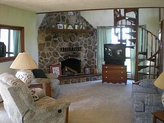 Well kept home on 3+ acres. Two spacious bedrooms, first floor laundry, eat in kitchen with oak cabinets, full bath with shower and soaking tub, wood burninf fireplace and gas fired stoves, plus hot water baseboard heat. Wrap around deck and detached garage/workshop. Also has a pond and a lean too. Put this one on your list....