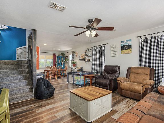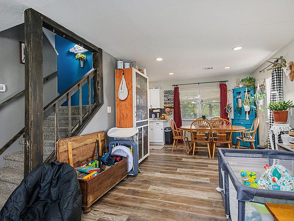 Upstairs, you'll find two generously sized bedrooms and a fully remodeled bathroom. The cozy living room flows seamlessly into the dining area and kitchen, creating the perfect space for family gatherings or entertaining guests.