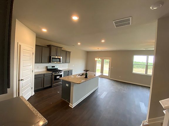 The Hayden floor plan with 5 bedrooms & 3 full baths featuring an open floor plan, luxury vinyl plank in main living areas. The kitchen features granite countertops and a gas range. Guest bedroom and full bath downstairs. MBR and 3 additional bedrooms with a loft and laundry room upstairs. MBA has double sinks, separate shower and tub, toilet closet huge linen closet. Sprinkler system. Energy Efficient. Highland Hills is an incredible swim community with private neighborhood pool, cabana, streetlights and sidwalks. Close proximity to I-20. Energy efficient. The home is occupied, but in excellent condition--like new.