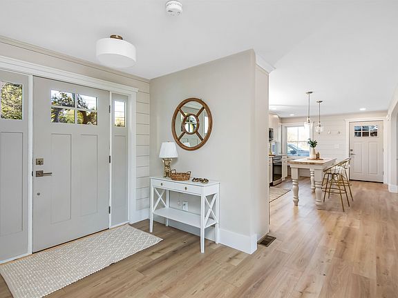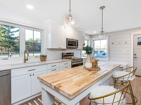 Welcome to 218 Railroad. This stunning single-level home has just finished an extensive renovation and is awaiting its new owner. With 2096sqft on a single level, this home is a rare gem. Entering the home you are greeted by a significant foyer to welcome visitors. Straight ahead through the cased opening is a living room large enough for all to gather. Massive windows let the sun stream in and showcase the beautiful white oak laminate flooring that runs through the home. The fireplace acts as a wonderful anchor to the space. From the living room make your way to the spacious kitchen appointed with high-end cabinetry to the ceiling, quartz countertops, and stainless steel appliances, this kitchen is sure to impress. Off of the kitchen is a built-in bench that could act as a great spot to take off your shoes upon entering the home. There is a large dining room and beyond that is a wonderful, light-filled secondary living space that leads out to the backyard. Take in the wide main hall as you make your way to the 3 bedrooms. The full bath at the end of the hall features chic hexagon tile with an amazing vintage console-style sink with brushed gold fixtures. Some notable updates include; all new windows, exterior doors, garage doors, board and batten siding, lighting, front and rear decks, extensive plumbing and electrical updates, flooring, interior doors, hardware, fixtures, bathrooms, full kitchen and much more! This home truly is not to be missed. Realtor owned.