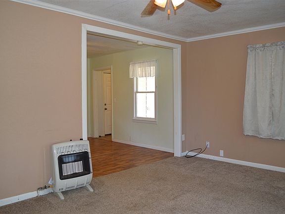 This is the perfect starter home or investment property, for someone who wants a little land. The house sits back off the street and yet has lots of yard behind the house. The home is clean and tidy and ready for someone to move right in. It has 2 bedrooms, 1 bath and the eat-in kitchen opens to the living room. There is a laundry room inside too. There is a carport for one car attached to the house and a metal carport for a larger car/pickup out front. In the back of the house is a nice deck for grilling out and a shed for all your outdoor equipment or for storage. If gardening is your thing, there is space to grow your own vegetables or landscape the yard with flowers. I love the shade trees too.