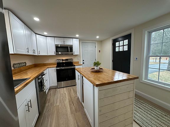 Price Improvement!!!! Welcome Home!!! Tastefully renovated and waiting for you!!! This lovely 3 bedroom 1.5 bathroom home sits on 1.53 acres with town water and sewer. New, new, new is what you will find when you walk through the door. Fully applianced kitchen with stainless steel appliances and plenty of cabinets, charming island with extra cabinet space, wine rack and seating, spacious living room with tons of natural light and room for everyone. Additionally you will find 3 bedrooms, a full bathroom and a 1/2 bathroom with laundry hookups. Direct entry off the large oversized and heated garage. Tons of room for your cars, toys and storage. Front and back garage doors. Unfinished basement. This lot has room to roam for your animals, family, friends and so much more!!! Do not miss this opportunity to call this house YOUR home!