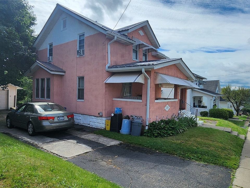 Move right in! Well maintained, stucco 2 story home in the Little Italy community in Endicott. Nearby restaurants, walking distance to George W Johnson Park. Enjoy your morning coffee on the covered back porch as you watch the sun come up and relax in the evenings on the spacious covered front porch. Beautifully maintained hardwood floors throughout, refinished hardwood trim and banister, cast iron sink, new steel exterior doors, replacement windows in kitchen and 2nd floor, ceiling fans in living room and bedrooms, pull down attic for extra storage, storage shed under garage with additional garden storage under back porch, private fenced in yard with raised garden bed. 2016 metal roof and gutters. Endicott, known as the birthplace of IBM, is swiftly evolving into a technology hub. With a new Battery Manufacturer, Solar Manufacturer, and a significant research and development grant, the area shows economic growth. Make Little Italy your home. Call you favorite real estate agent today.