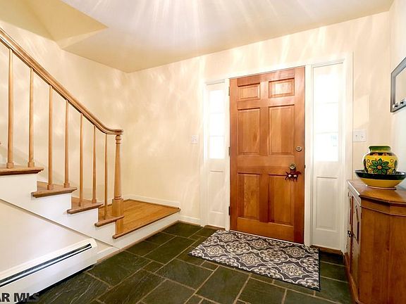 Your own slice of heaven! Beautiful, park-like 1/2 acre lot with a gorgeous view of Tussey Mountain. Tucked away in secluded Everhart Village, this well-built and pristinely maintained two story rests near the end of a dead-end road and exudes charm. Enjoy hardwood and tile flooring throughout the home, a lovely and spacious living room with brick hearth, fireplace with wood stove insert, and built-ins, a three season sunroom, master bedroom with ensuite and walk-in closet, and so much more. Built for relaxing and for entertaining spend time sitting in the sun room and on the spacious, lighted deck enjoying envious views, luscious greenery, and playful wildlife. Many recent upgrades include high quality remodeled baths, a new deck and stone veneer exterior, high performance Pella windows, a newer roof, a newer boiler, stainless steel appliances, and newer fixtures and fresh paint in many rooms. Close to the YMCA, bike paths, downtown State College, and Penn State. A true gem!