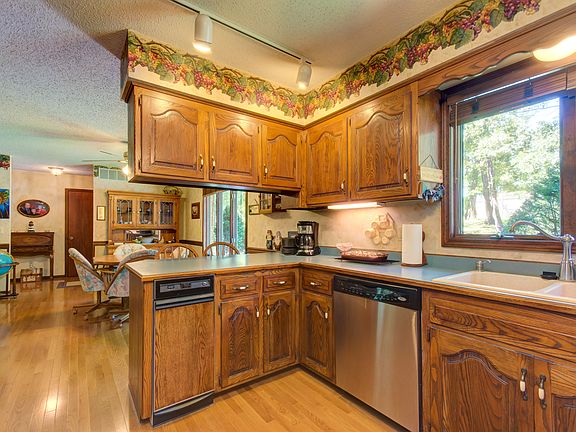 spectacular view and deck, Master bedroom has an enclosed sun room for year round enjoyment. Walk out basement with a John Deer room, lots of storage space. RV barn and a workshop, a pond and mature landscaping. Offered at $239,900.