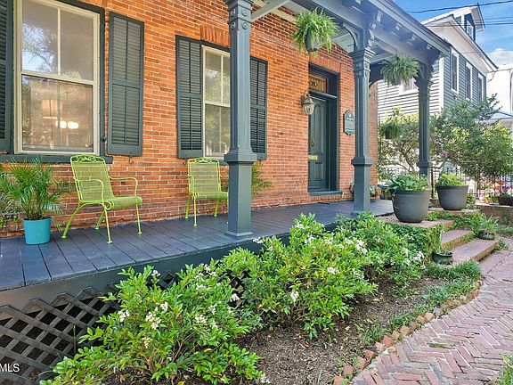 Here is your chance to own a piece of living history. Welcome to the Latimer Waddell House in historic downtown Wilmington. This graceful beauty sits only a few blocks from all the Port City has to offer, only a quick jaunt down to the Cape Fear River and all the quaint restaurants and shops. This all brick home has been lovingly restored from top to bottom. With three roomy bedrooms and three full baths, an office, large basement with workshop, this home has all the charms of an old home but recently updated. Sit on the fenced-in front porch and watch the city buzz by. The sun-filled living and dining rooms have full-sized pocket doors for an open floor plan or a more cozy setting, and the giant eat-in kitchen has been completely renovated, with stunning fantasy brown marble counters, marble subway tile backsplash, double wall ovens, spacious single-bowl sink, and versatile island; you can cook for a crowd. The French door opens on to the back deck, which perches over the tree-filled garden, a perfect, private getaway, just you and the birds. Take the steps down to the sunken garden, a magical space with a brick fountain, laden with water hyacinths, tucked under the magnolia and fig trees. Herringbone brick pathways lead you around the property.