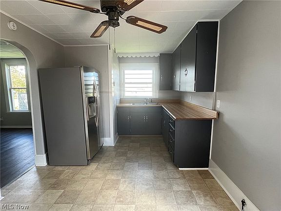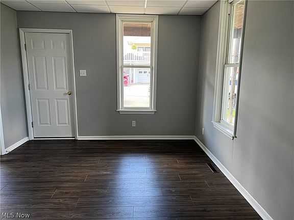 Home has been completely remodeled inside w new flooring throughout, freshly painted interior, new ceilings in two rooms w new lighting except for the kitchen. There’s an eat in kitchen, formal dining room, nice size living room and 2 br and 1 bath w laundry on the first floor. Partial walkout basement w furnace and central air new in 2016 and it has newer vinyl windows. There’s a wrap around covered porch and small deck that over looks a large yard w off street parking in the back off the alley and a shed for added storage.