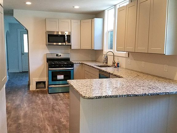 Total remodel! All sparkling new! University home, main floor bedroom, full bath and laundry. Large kitchen has granite counters, and modern gray shaker cabinets, eat at breakfast bar, new stainless appliances and walk in pantry, formal dining room, and living room. Upstairs you have a master suite w/walk in closet another bedroom and large office. Cute fenced yard w/covered carport and detached garage.. Gas FA heat, new vinyl windows and metal roof.