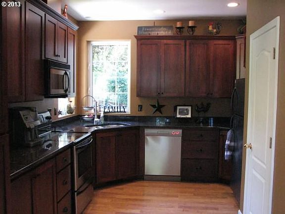 Immaculate house with 5 bedrooms on almost a half acre close to town. All new kitchen w/2 pantry's and exterior paint in 2012. Property is fenced with a dog run, pear and apple trees, grapes, fire pit and storage shed. Newer washer and dryer stay. Master and 1 other bedroom are vaulted. Ceiling fans throughout, plumbed for central vacuum and garage door opener. RV parking pad and additional fenced area for parking. View of Oregon Hills.