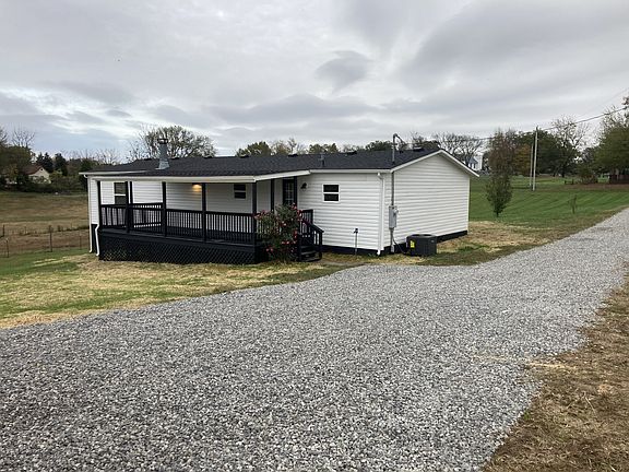 Remodeled home sitting on .96 acres. Home has new roof, HVAC, cabinets, lights, interior and exterior doors, siding, kitchen appliances and drywall. Large covered decks on the front and back of the house. Also has a 28 x 22 detached open garage. Septic system is approved for only 2 bedrooms but house has 3 rooms suitable for bedrooms.