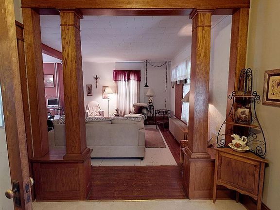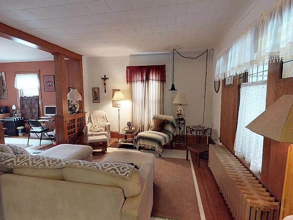 This beautiful large family home is full of character! There is 4 Bedrooms, 1.5 Baths, and a front enclosed porch that is 4 seasons, and a back enclosed porch. There is natural wood work, tall ceilings, wood columns, hard wood floors, and a pocket door! Need storage? There is a full, floored walk up attic. The basement has tall ceilings, and a finished room; for the kids to hang out! There even is a 3 Car heated garage!! New 30 year Roof put on in 2018 on the house. Seller is unaware of the condition of the hot tub