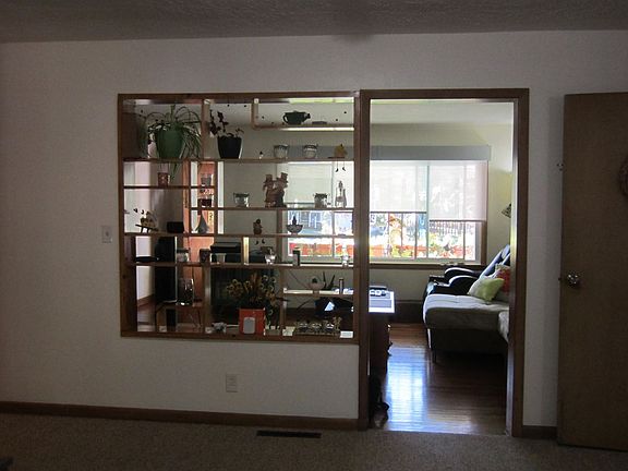 This is ''one of a kind''. Seller will do no repairs. Sellers have moved to Germany. Furniture stays, including 3 flat screen TV's. Curtains/blinds in living room are controlled by 6 hidden motors to provide a multitude of choices in light penetration, installed 1 year ago. Master bath has new floor and new vanity. New vinyl windows last fall. New paint throughout. All appliances stay. they paid extra to have hyper-quiet dishwasher. Wonderful sunroom to enjoy the many birds that come to feed. Fireplace has a Canadian energy-efficient wood burning insert with blower that will heat entire house most of the time. There is a steel flue that runs all the way through the chimney to protect against chimney fire. Installed about 2 years ago. New heavy duty storm doors. Furnace and AC about 2 years old. Beautiful light knotty pine walls in east bedroom. Mattresses are memory foam (value over $1000).Notice door to garage from family room slides. There is a sensor to trigger kitchen lights to come on before you get there.