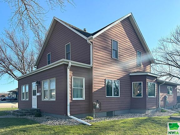 Great curb appeal, convenient location, and functional living are all offered in this New Sioux Center listing! Built in 1900 with over 1,500 square feet of living space, this 2 story home features 3 bedrooms, 1.5 baths, 2 stall attached garage with alley access, patio, along with established trees and lawn! The main floor features a porch area, large living room, den/office, kitchen with island, dining room, primary bedroom and full bath! Upstairs is home to 2 large bedrooms and loft area with closet and office! The full basement offers a large family room, potential bedroom #4 (non-egress), laundry and 3/4 bath with mechanical, storage and garage! Several updates including updated siding, Andersen windows, flooring, insulation, landscaping, and shingles & gutters (2010). Move in ready, all appliances included, and situated within steps of downtown!