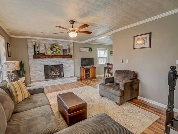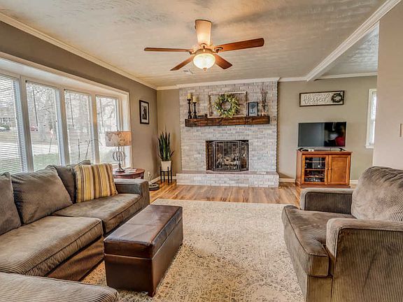 Welcome to this cute 3 bedroom 2 bathroom Tri-level home situated on a large corner lot with a brick patio and shade for entertaining friends and family! Upon entering you will find a spacious living room with beautiful laminate wood like flooring, a large bay window, ceiling fan, crown molding, fireplace with brick surround and is open to the dining area. The kitchen features laminate counter-tops with a back-splash and all appliances included. Just off the kitchen is a family room with a Sun-room off the back. The master suite has carpet, ceiling fan, double closet and shared remodeled bathroom. There are two more bedrooms upstairs. The main level also has a full bathroom in the laundry room with tons of storage space. There is also an over-sized 2 car attached garage!