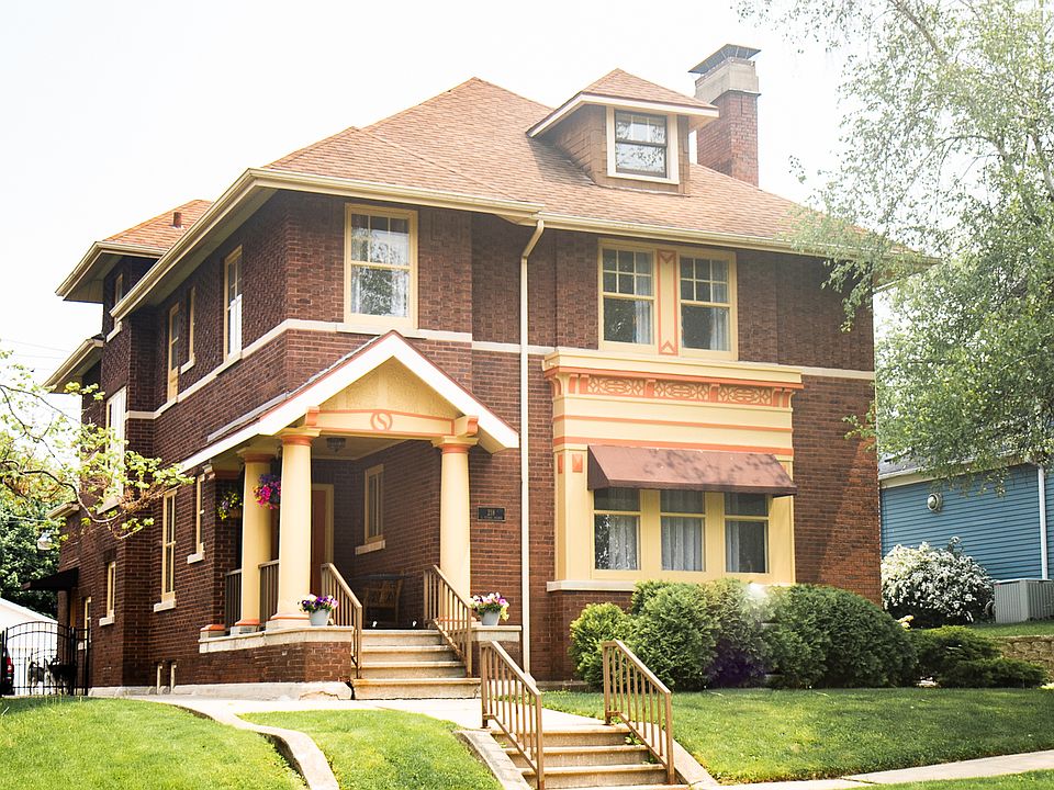 Beautiful brick home with traditional woodwork throughout, built-ins, and classic leaded glass and stained glass windows. This place is really one of a kind. This home has space for everyone. There are 5 traditional bedrooms but with the finished basement there are 2 more plus another 1/2 bath and separate shower. The main floor features large entry way with original hardwood flooring that leads you into the living room that features a gas fire place with gorgeous built in cabinets and multiple stained glass windows. French doors take you to the large dining room that will fit most larger tables. There is an office space off of the dining room that could be used as a bedroom if needed. The beautiful open staircase leads you to the 2nd floor which features 4 bedrooms 2 full bathrooms large hallway and of course more of the beautiful woodwork. The 3rd floor has one bedroom and one full bath. If that's not enough space this home has a fully finished basement with 2 more bedrooms, living room and much more. The back yard is partially fenced and there is a heated 2 & 1/2 car garage with alley access. You really have to take a look for yourself.