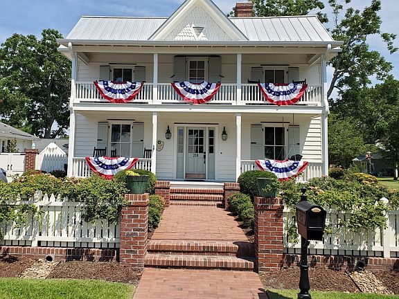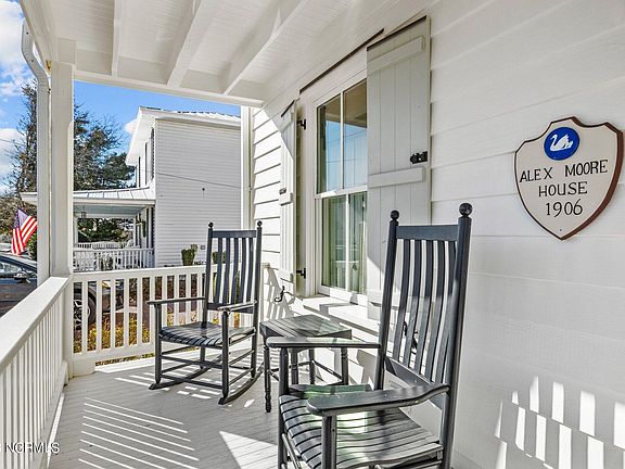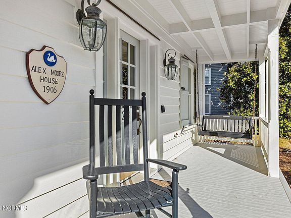 The Alex Moore House is a beautifully remodeled 1906 two story home. It's located in Historic Downtown Swansboro, a short walk from popular waterfront restaurants and shops. Completely renovated in 2015 this 3 bedroom, 3.5 bath beauty has all the modern conveniences. Upon arrival you will be greeted by a rocking chair front porch or you can enter through the private courtyard. Both entrances are lined with stunning rose gardens. In the back is the private salt water in-ground pool and outdoor kitchen with a JennAir gas grill. Relax and enjoy the sauna located inside the detached garage/workshop. Level 1- You will marvel at the fully equipped gourmet kitchen. It includes Viking professional appliances, a wine refrigerator, double oven, microwave, dishwasher and refrigerator. The kitchen has island seating for four (4) and an adjacent formal dining room seating eight (8). The living room is open to the kitchen and allows everyone to be a part of the activities. The parlor is a private room with a desk, fireplace, and loveseat (fold out twin bed). This room is ideal for relaxing with a book or maybe catching up on some work. Level 2- There are three bedrooms. The primary bedroom (queen bed) has a fireplace, private entrance to the balcony (seasonal water view) and a full bath with soaking tub, fireplace, and walk-in closet. The second bedroom (queen sleep number bed) has a shared full bath. The third bedroom (two twin beds) has a private entrance to a small balcony overlooking the courtyard and a shared bath. There is also a separate and private recreation room with big screen TV, sectional sofa (fold out queen bed) and private full bath. Just bring your toothbrush, and enjoy all this home has to offer.