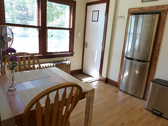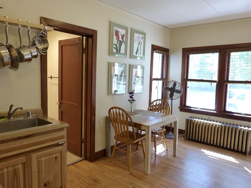 Charming apartment close to downtown. Historic home that was converted into 3 private apartments. Shared laundry in common area. Beautiful shared yard. Tenant pays electric. No smoking of any kind in or around the property. Peaceful environment. Alley parking. Tenants assist with back path snow removal.