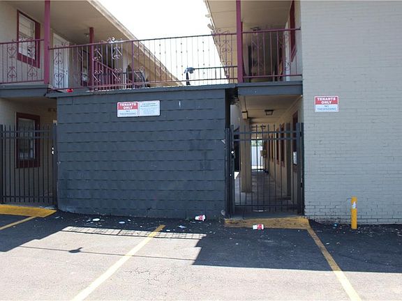 Property is located in the South Central Section of the Oklahoma City market and is close to several major highways and Tinker Air Force Base. Some units are rented all bills paid but the property is separately metered for electric. Previous on-site laundry that could be restored. Property is secure with wrought iron gates and fencing. New window bars for security. Metal security screens on every unit. The current owner has been renovating. Many units have had the counters, bathtubs, and enclosures re-glazed and the faucets replaced. New blinds.