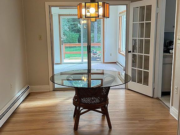 This move-in ready home offers 3 bedrooms, 1 bathroom, and 1,604 square feet of finished living space. Enjoy a spacious, heated year-round sunroom, a large 18’ x 15’ deck perfect for entertaining, and a full partially finished basement for additional living or recreational space. The home features an updated kitchen and bath, new hot water heater, hot water baseboard heat, and a new ductless split heat pump system for added heating and cooling, new septic tank.