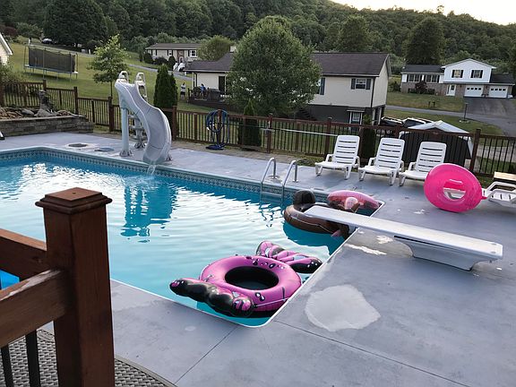 Located in Jo-Lin Acres on a corner lot, this 2 story home offers a fabulous outdoor living space. There is an in ground pool with a slide and covered patio area with a beautiful stone fireplace to enjoy time with family and friends. There is also an adjacent additional undeveloped lot available for $30,000 if you want more space. The kitchen boasts a center island and eat in breakfast area