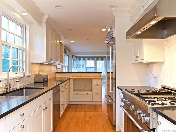 Welcome to Historic Silvermine, Norwalk's most desired neighborhood! 218 Silvermine Ave delivers the perfect package for today's buyer. With the character you would expect from a home built in 1920, this colonial has 3 beds and 2 full beds, a 1 car garage, all on almost one acre. The main living space is open, and updated. The kitchen is updated for today's buyer, with white cabinets, granite counters, a large gas stove with large hood vent, under-cabinet lighting, and so much more. The kitchen leads to a side patio, perfect for warm summer mornings enjoying a cup of coffee. There are HW floors on this entire level, with a large, open living room, a large stone fireplace, built-in shelves/bookcases, and lots of windows all overlooking the large, park-like yard, and Silvermine River. There is a formal DR and large laundry room here as well. The full bath on this level is completely updated. On the second level there are 3 large bedrooms, also with HW floors, and a full bath. From the master bedroom, there is access to a finished attic space. The basement is also fully finished with several cozy spaces, perfect for den, kid's play room, office, or more. There is also a large, semi-circle patio that connects the basement to the yard. This yard is completely cleared and fully level, right up against the river. All of this is minutes from shopping, the major highways, multiple train stations, restaurants, and so much more.