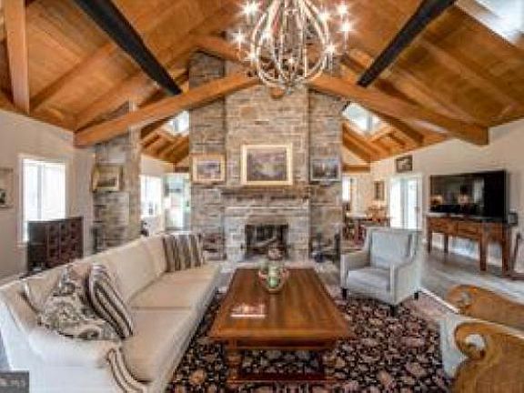 Who would not fall in love with this very unique custom farmhouse-style gem by B&D Builders, located in desirable Malvern. You will first be captivated by the scenic setting amid rolling hills and sprawling estates, in a coveted community recognized in Chester County for its land preservation efforts. Privacy is yours, nestled on lush 4.7 acres, making it feel like a world all your own. Inspired by JTA Associates fine design of the Valley Forge Flowers store in Spread Eagle Village, PA, the Wayne-based architects created a distinctive floorplan and roof design for this special house too, built with lumber brought in from the Pacific Northwest. Two-story interiors are just as striking with an airy open-concept floorplan and chic industrial look. Walls of glass, exposed beams and exposed black venting complement an original stone fireplace that adds a touch of warmth. Floor-to-ceiling windows bathe the ambience in light, while radiant heat flooring provides toasty toes in winter. High-end finishes and appliances throughout enhance the luxurious modern aesthetic. Entertain in the dramatic living room featuring vaulted wood ceilings with exposed beams and a full bar of reclaimed barn wood for serving cocktails. Gather around the fabulous 2-sided wood-burning stone fireplace that extends through to the beautiful Sterling chefs kitchen appointed with granite counters and island, tiled backsplash and Thermador appliances. Nearby is a walk-in pantry, powder room, laundry, and access to the 2-car attached garage. Relax in the desirable first-floor master bedroom that opens to a lovely flagstone patio accented by rock walls, multi-tiered landscaping and specimen plantings. An en-suite bath pampers with double sinks, radiant flooring, an oversized walk-in shower and separate soaking tub. An artistic floating custom wood staircase with forged steel ascends to the second level housing 2 bedrooms, a shared full bath, and spacious open office area for working remotely. The fourth bedroom with its own separate entrance sits above the garage and makes ideal quarters for guests with vaulted ceilings and a full bath. This oasis is also situated in a prime location near great schools and amenities. Renter will pay all utilities, with the exception of the trash pick-up fees.