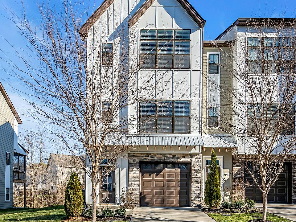 Welcome to 218 Stonecrest! This beautifully maintained end-unit townhome offers modern finishes and a smart layout. The entry level features an inviting foyer, a spacious den with a full bath—perfect as a 3rd bedroom, in-law suite, home office, or gym—and a covered patio. Enjoy an open-concept living area on the main floor with a large kitchen island, stainless steel appliances, and a gorgeous designated dining room. The living room opens to a screened-in porch with custom privacy screens, creating seamless indoor-outdoor living. The top floor is anchored by two large suites with new custom walk-in closets, luxurious baths, and a convenient laundry suite. Additional highlights include a one-car garage, concrete driveway, and a location just minutes from the interstate and downtown Nashville. This home is a must-see!