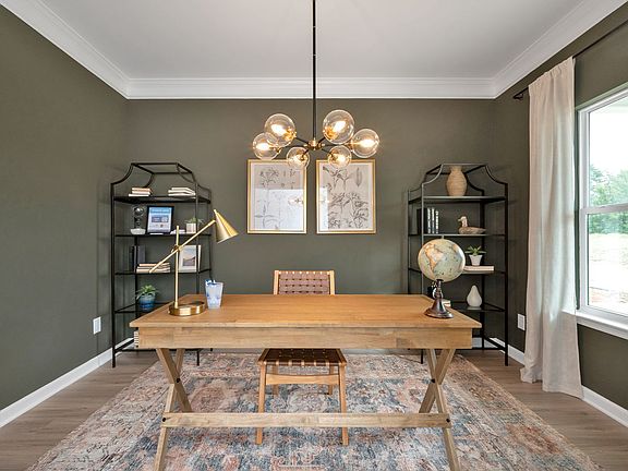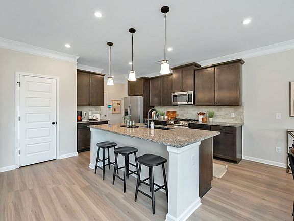 Based on our top-selling plan, the Harrington delights with its massive second-floor owner's suite privately tucked away on the same level as its three additional bedrooms.. The first floor impresses with an open concept family room. The kitchen, equipped with gas appliances has a large center island with granite counters, and sink and opens to the breakfast area which also leads to the rear patio, perfect for entertaining. Off of the foyer entry is a study with beautiful french doors. The massive owners suite on the second floor includes easy extra access to the laundry room directly. The owners bath has double bowl sinks, a soaking tub, and shower with glass door while the additional three bedrooms share the second bathroom off of the landing area at the top of the stairs. There is still time to make some selections in this home!