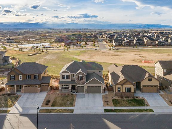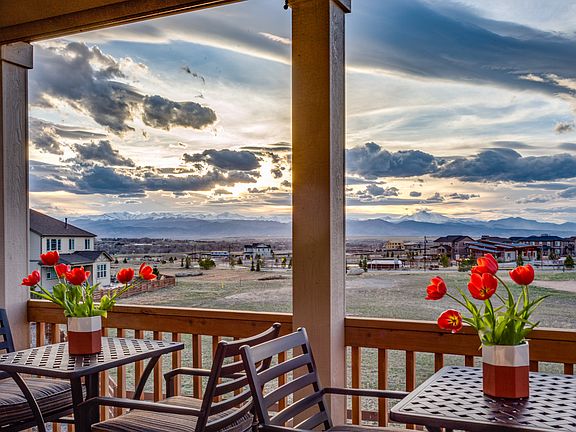 This well-appointed Erie home has VIEWS FOR MILES! Situated perfectly on Sunbeam Court with awe-inspiring unobstructed views of the mountains, including Longs Peak. With over $135,000 in upgrades, Garden Level Basement, Covered Patio, 8' Doors, Coffered Ceilings, Rounded Corners, High-End Cabinetry, Built in Entertainment Center, Custom Master Closet, Gourmet Kitchen with Built in Desk, and Main Floor Bedroom/Bath... this is an Erie home that has everything you've been looking for!