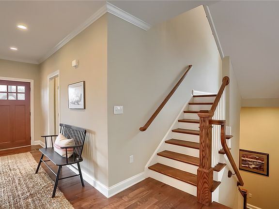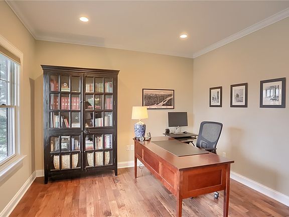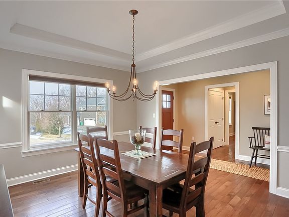 Pristine curb appeal complements stone accents, concrete drive and aggregate walkway leading to the front porch of this custom build. Spacious foyer’s sprawling hardwood sets the stage. Private den is perfect for anyone working from home. Entertain in the elegant dining room with an amazing Butler’s pantry leading to the new gourmet kitchen with all the modern amenities and materials; granite, under cabinet lights, island with pendants, soft close cabinetry, backsplash, rear patio access and more. Open to the expansive family room with a stone floor to ceiling fireplace, crown and wall of windows making this an entertainer’s dream. Powder and new laundry complete. Open staircase leads to the luxurious primary suite with spa bathroom. Two guest bedrooms have a Jack and Jill and a third shares the hall bathroom. Finished lower level provides versatile space for your need, and second family room with wet bar and full bathroom. Relish in the private yard with mature trees or on the patio.