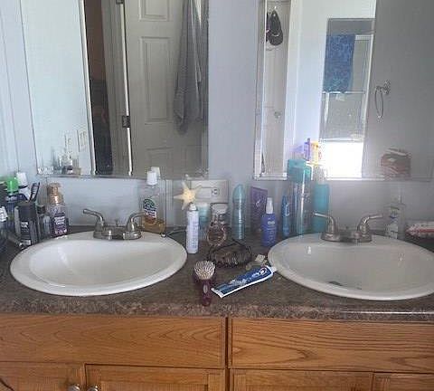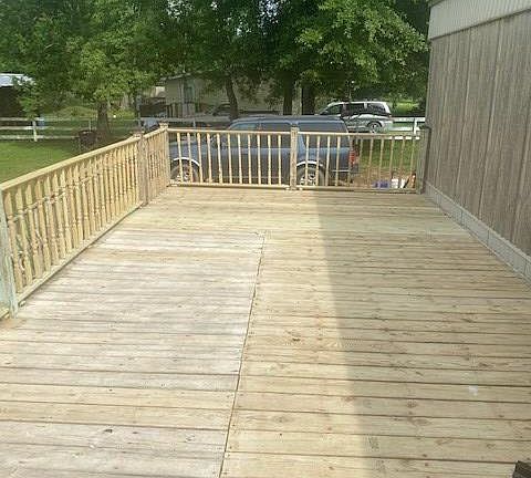 Mobile home 3 bed/ 2 baths completely repainted with new flooring in bathrooms. Open & covered deck on the back with fenced dog pen.