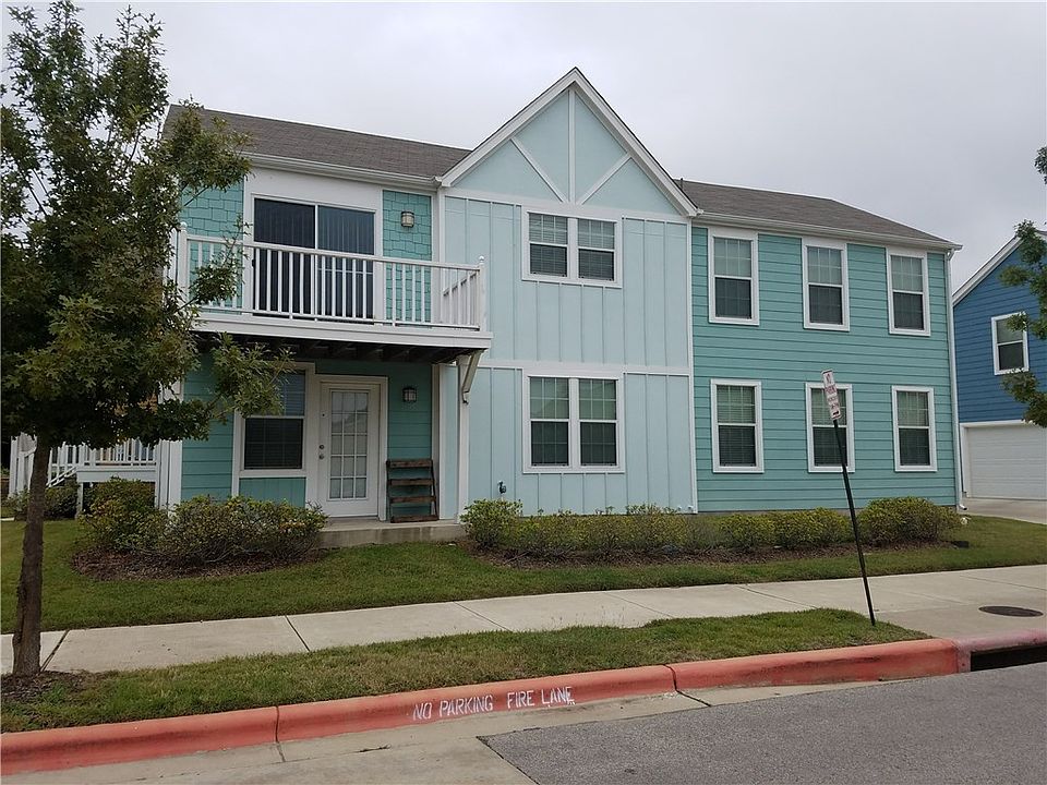Unique floor plan with 3 beds and 3 full baths located in a well established neighborhood with access to the Blanco River. This split level home has a living room and kitchen on both levels with two master bedrooms with en-suite bathrooms. Additional bed/ bath upstairs with dining area and laundry room. Covered patio, balcony, 2 car garage and two entryways. Yard is maintained by Homeowner's Association.