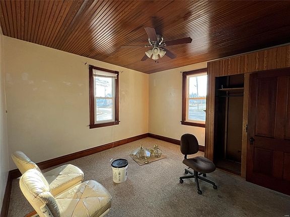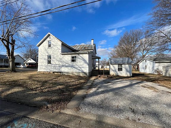 Older home on a large corner lot in Red Bud. Currently only 2 bedrooms, but additional rooms upstairs could be used for bedrooms. Home features a large eat-in kitchen, main level bedroom, and main level laundry. Upstairs is finished with a bedroom and two spaces that could be used as dens or possibly bedrooms. There is a small storage shed out back, but the lot is large enough to build a garage.