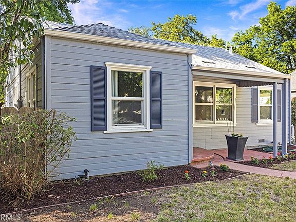Cute as a button! This 2 bedroom, one bath West Avenues cottage is nestled in a quiet neighborhood within walking distance to Downtown Chico, Bidwell Park, and Enloe Hospital. From the moment you pull up to this home, you will be charmed by the white picket fence, plantation shutters, covered front porch, and bright yellow dutch style front door. Inside you will find beautifully rich hard wood floors, curved ceilings, french doors to the backyard, a quaint dining room, and a beautifully updated kitchen. The kitchen is a delight featuring quartz counters, subway tile backsplash, stainless steel appliances, white cabinets, and laminate floors. Just off the kitchen is a darling breakfast nook with built ins along with an indoor laundry room. The bathroom is nicely situated in the center of the house featuring classic mosaic tile floors, salmon pink shower tile surround, built ins, and a modern vanity. The bathroom is sandwiched between two bedrooms that also boast rich hardwood floors. This home has been lovingly upgraded including dual pane windows throughout, a newer upgraded electrical panel, newer central HVAC system, and a tankless hot water heater. This home also boasts newer siding and exterior paint while still preserving the 1941 history and character. The backyard features another covered porch with french doors that lead inside. You will also appreciate the detached one car garage with alley access, brick pavers, established hydrangea and a beautiful Japanese Maple in the center of the yard to make a statement. A large raised wood deck just off the house is the perfect setting for your morning coffee or evening summer nights with the comforting shade of an established maple tree.
