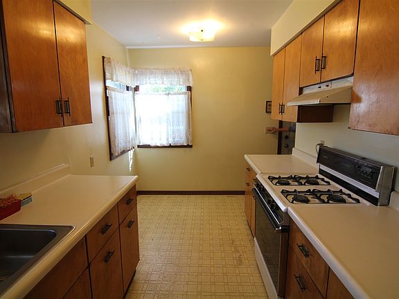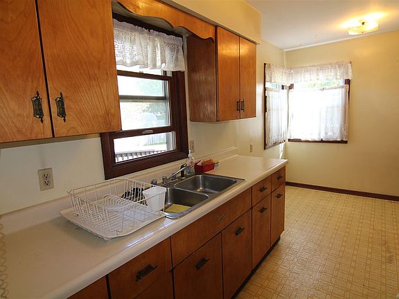 3 bedroom ranch close to the school & park in Blue Grass. Hardwood flooring in bedrooms. Spacious living dining room with wood burning fireplace. Sliding doors from dining room to nice deck. Also has a second electric fireplace. Galley kitchen does have room to eat-in. Beautiful fenced backyard. Appliances are included. Being sold in as-is condition.