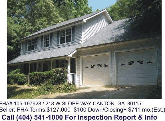 105-197928 Type: Residential - Single Family CANTON, GA 30115 County: CHEROKEE List Price: $112,500 As-Is Value: $125,000 Beds: 3 Baths: 2 Family Room: Kitchen: 1 Dining Room: 1 Living Room: 1 Den: Units: 1 Parking Structure: Built-In Garage Year Built: 1993 HOA Fees: HOA Frequency: 100-Year Floodplain: No 203K Eligible: Yes