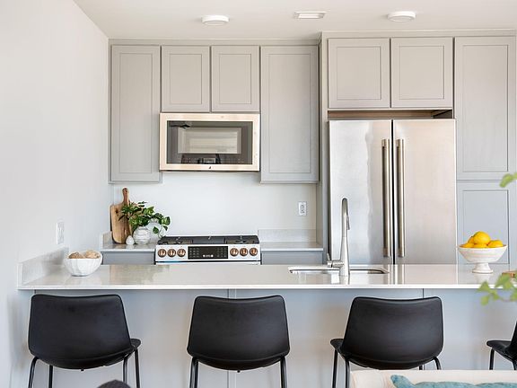 Adjacent to the living area, the well-appointed kitchen features modern appliances, sleek countertops, and plenty of storage space. Cooking meals at home is a joy in this efficient kitchen, and the nearby dining area provides the perfect setting for enjoying your culinary creations.