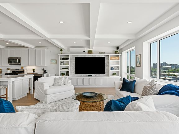Designed with both elegance and functionality in mind, this unit features an open-concept living and dining space anchored by a large kitchen with gas range and oversized quartz island—perfect for entertaining! Adding architectural sophistication is the beautiful coffered ceiling. Two expansive private decks with Western exposure provide space to unwind with gorgeous sunsets over the water and city lights as your backdrop.