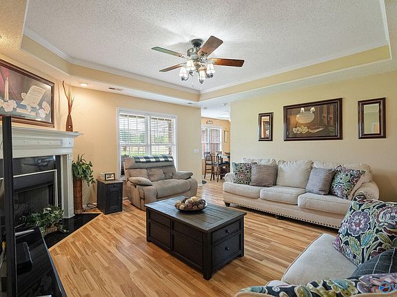 - Features: Ceiling Fan(s), Crown Molding, Fireplace, Recessed Lighting, Tray Ceiling(s), Window Cov, Wood Floor