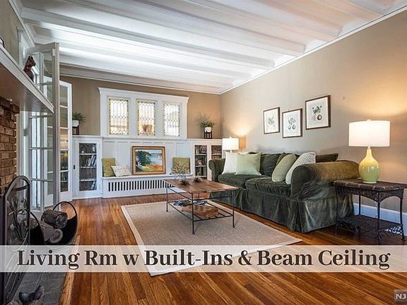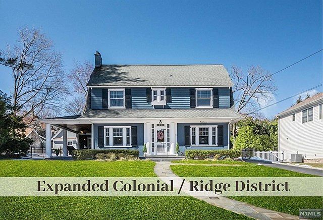 Expanded Dutch Colonial in Ridge District nestled on lovely property is moments from town, train and schools. Entrance Foyer w streaming sunlight, inviting staircase and great sightlines is the perfect introduction. Living Rm w box beamed ceiling has Fireplace flanked by French doors leading to the most dreamy Covered Porch w Ceiling Fan. Outstanding Family Rm w/generous scale & custom Built-Ins is wrapped in windows for backyard panoramic views. Nearby is Family Dining w Sliders to Patio and Yard, Kitchen w Island Seating, Mudroom & Powder Rm. 2nd Floor includes Master Bedroom with Fireplace and twin closets, 2 more Bedrooms & Hall Bath. Ascend to the 3rd Fl to find 2 Bedrooms & fresh Full Bath. Lower Level has roomy Rec Room with crisp flooring, Half Bath, Laundry, Wine Closet & Lrg Storage. Expansive Backyard is Fully Fence. Belgium Block edged driveway leads to 2 Car Garage. Owners will share Master Bath Plans. Inquire for more detail. For more photos plz visit property video.