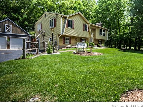 Expanded raised ranch on large private lot. Beautiful gardens, arbor trellis, and a 2 car detached garage as well as storage sheds. Kitchen w/breakfast bar & lots of cabinets. Dining room w/bay window leads to screened porch & deck. Living room w/gas stove. Master Suite w/bath. Lower level family room w/ fireplace. Bedroom in lower level as well as laundry room & additional room perfect for an office/crafts etc.