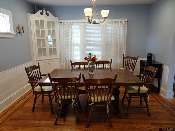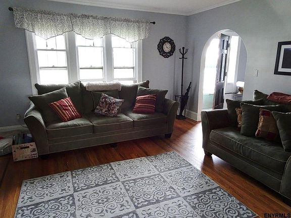 4 bedroom, 1.5 bath, 2 car detached garage, fenced back yard. Features include: hardwood floors, wood burning fireplace, ,1st floor laundry room. Walk to schools, shopping and places of worship. Taxes will get approx. $500 BASIC STAR exemption. One of the bedrooms is very small but fits twin size bed and dresser or could be office or nursery.