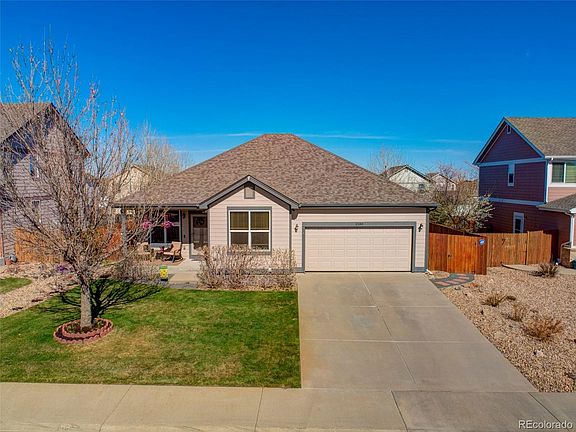 Welcome home! Watch the Sunset from your front porch. This gorgeous ranch 4b/3b home has an open floor plan and a finished basement. It has two spacious Master Bedrooms with walk-in closets and master baths one on the Main Floor and the other in the finished Basement. There are two additional bedrooms. Laundry is available on the main floor, washer and dryer are included. Kitchen includes all stainless steel appliances and has a hardwood floor. This awesome well kept home has wonderful landscaping, the spacious backyard includes a garden and has a dog run with entry into the garage. The Coyote Ridge community is within walking distance to the schools. If you love the simple laid-back life and that friendly, small-town feel Strasburg is for you! Easy commute to DIA, Buckley or Aurora/Denver. Downtown Strasburg features local shops and casual restaurants. Don't miss the opportunity to see this updated beautiful well cared for home!